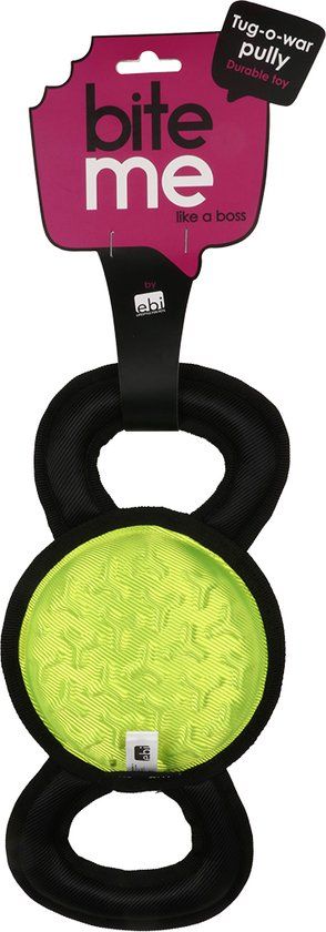 De bite me 'tug-o-war pully' is een stoer en stevig apporteer- en trekspeeltje met 2 handvaten. Het is gemaakt van een stevige oxford stof met daaronder kwalitatief eva schuim met 3d patronen. De squeaker binnenin zorgt voor een extra fun factor!